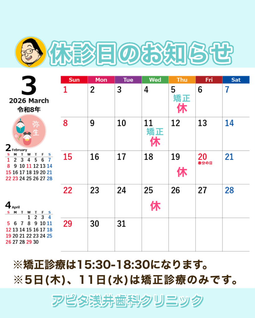 宇都宮本院、3月の休診日は下記の通りとなります。